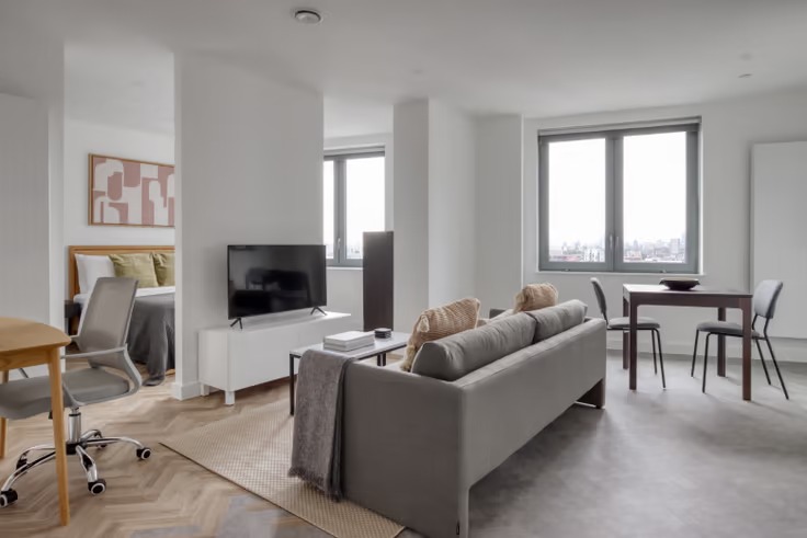 Large living area and dining space